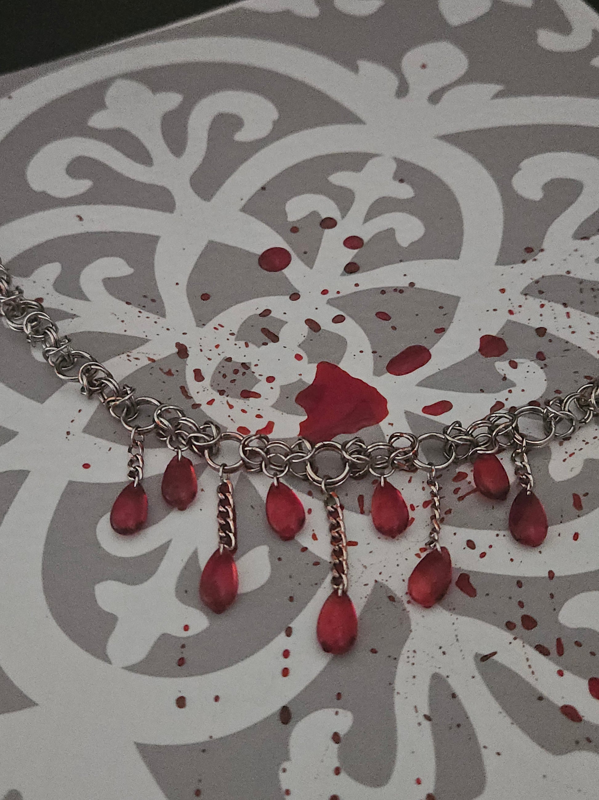 Our classic modified byzantine with delicate droplets of blood pouring from your throat.