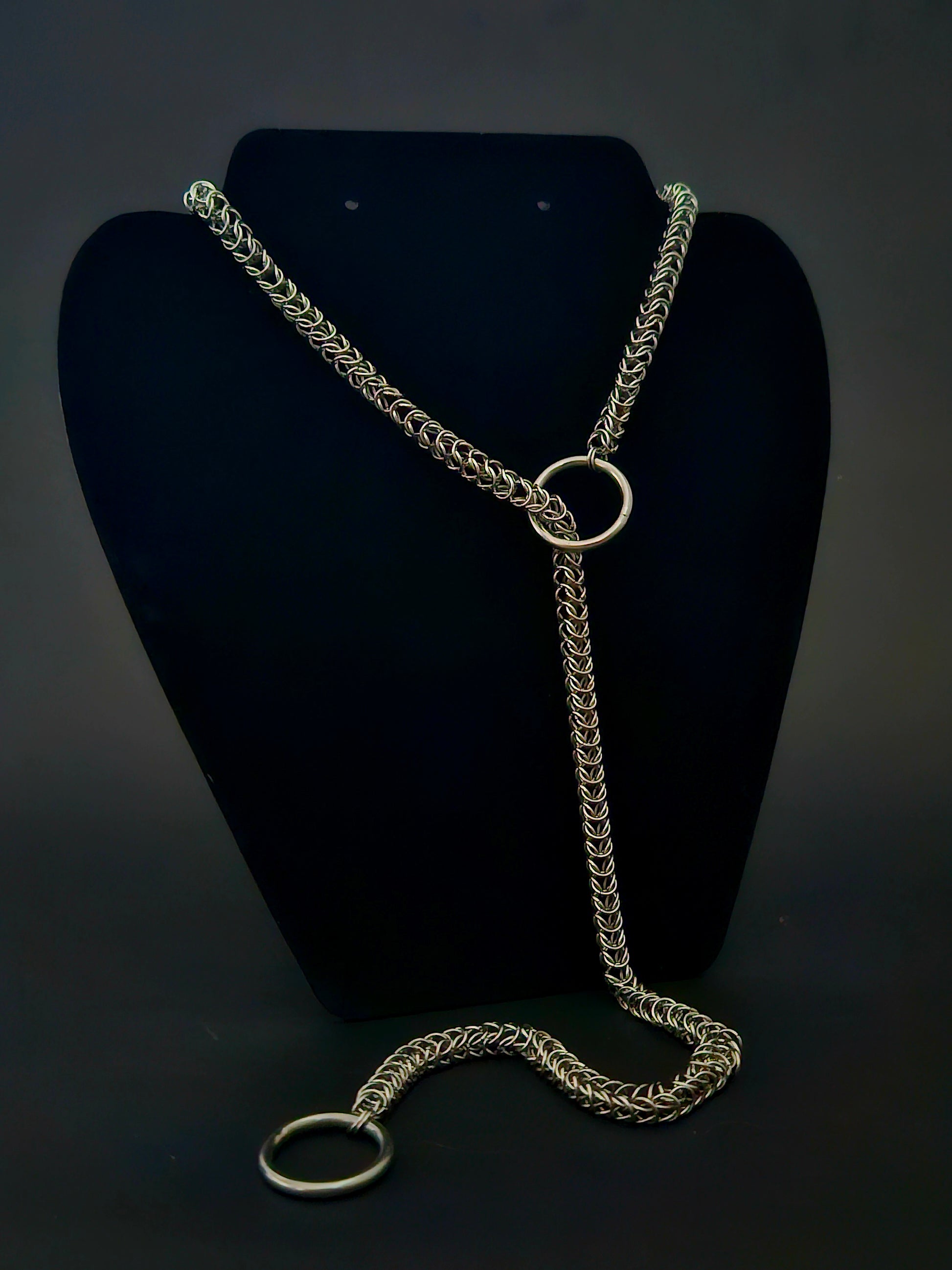 Long byzantine slip chain with large o rings. Stainless steel. 22 inches