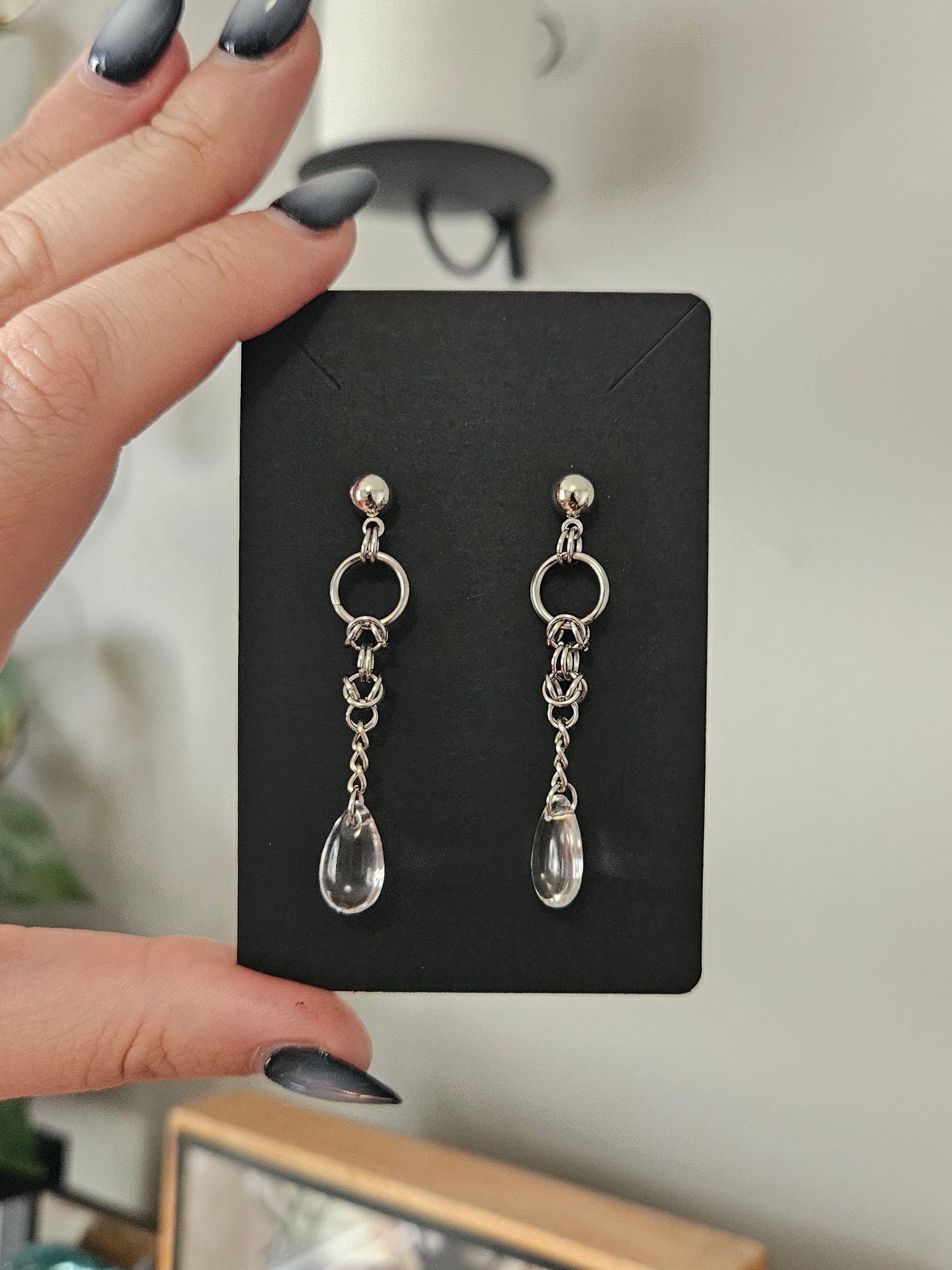 Rings, chains and byzantines. These teardrop earrings come in very colour and are made to match the colored collars available in shop. The dangle is delicious, the metal is shiny and the colour is bold or soft depending on your choice. Also available as tunnels. Standard side stud with classic backing. All stainless steel.
