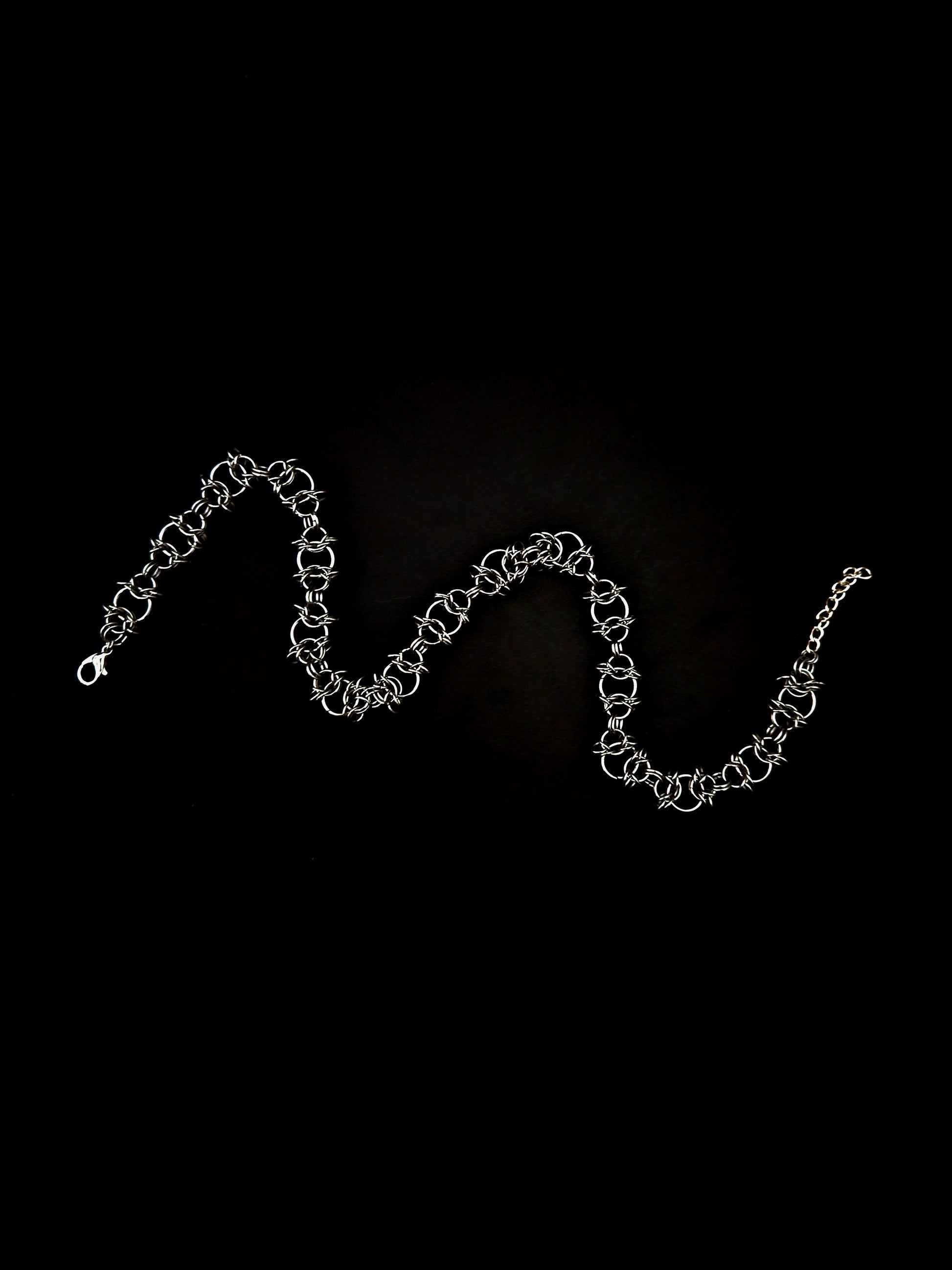 This slithery snake of all things ritual is made out of stainless steel. A bit like barbed wire, your throat will look totally badass with this taught around it. A consequence of your actions perhaps? Or maybe its a threat to theirs. Whether youre bad or dangerous, the Reckoning is here to do justice.